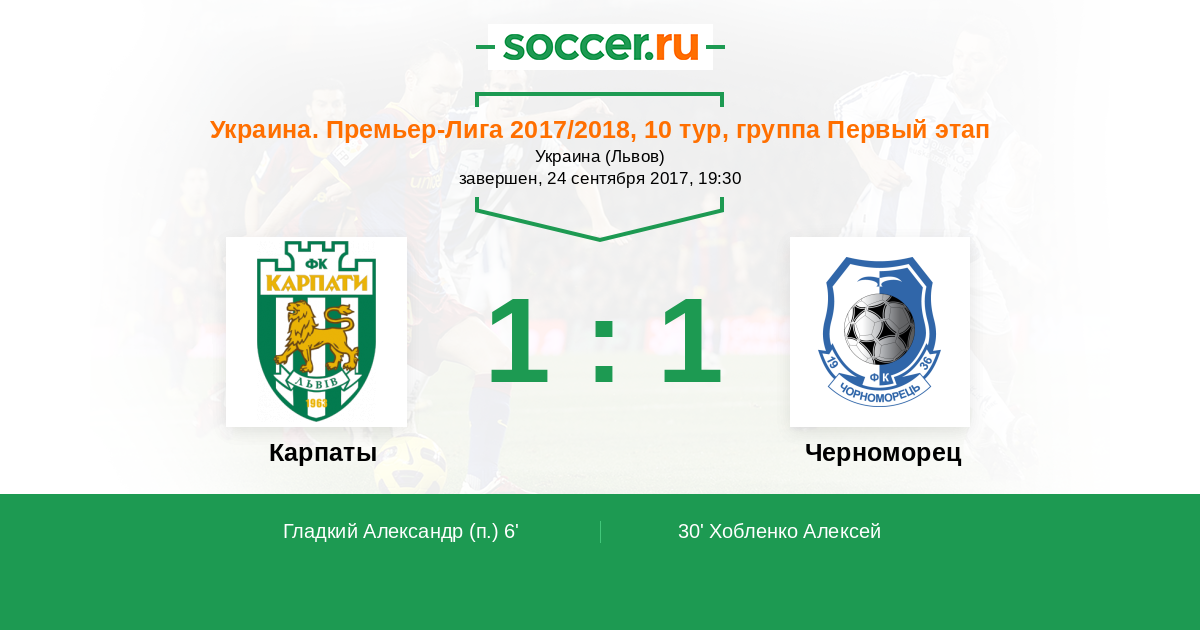 Протокол матча Карпаты против Черноморец