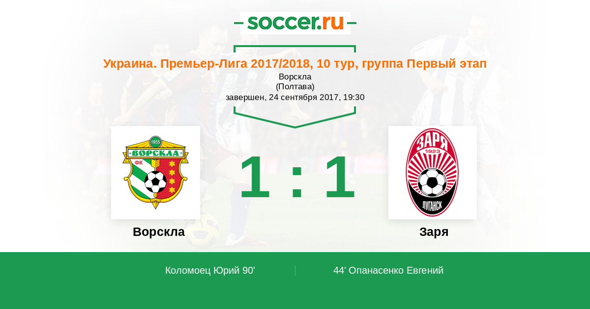 Протокол матча Ворскла против Заря