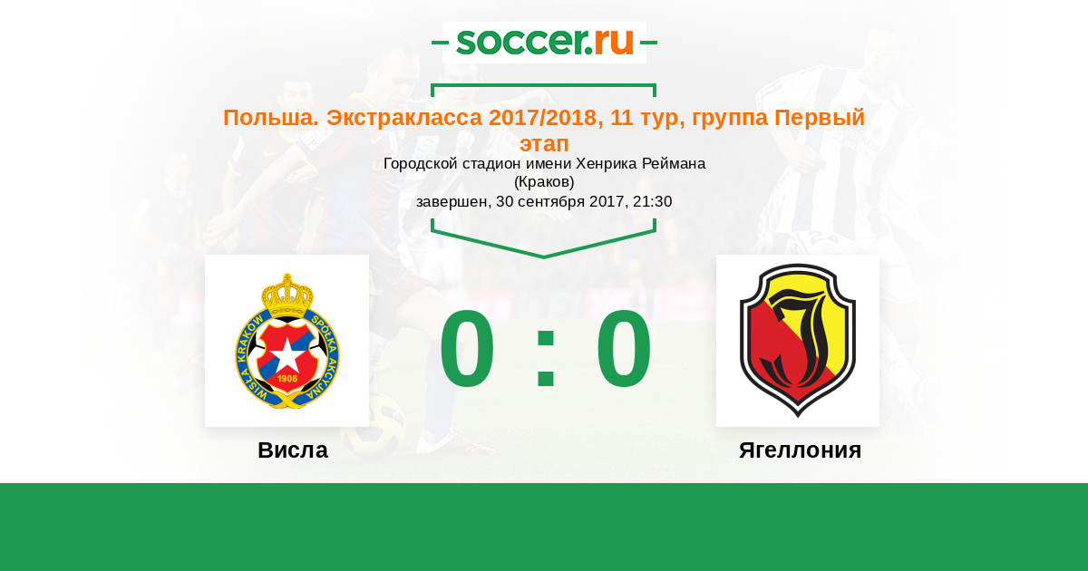 Протокол матча Висла против Ягеллония