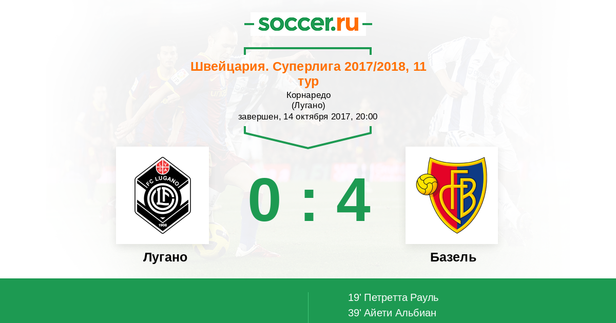 Протокол матча Лугано против Базель
