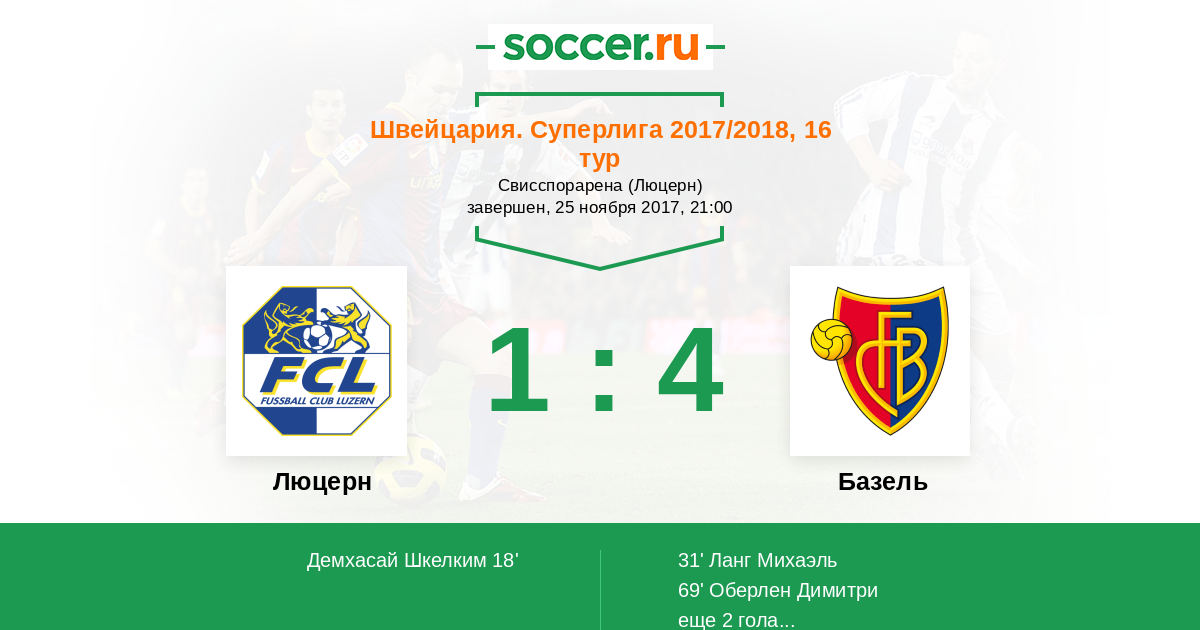 Протокол матча Люцерн против Базель
