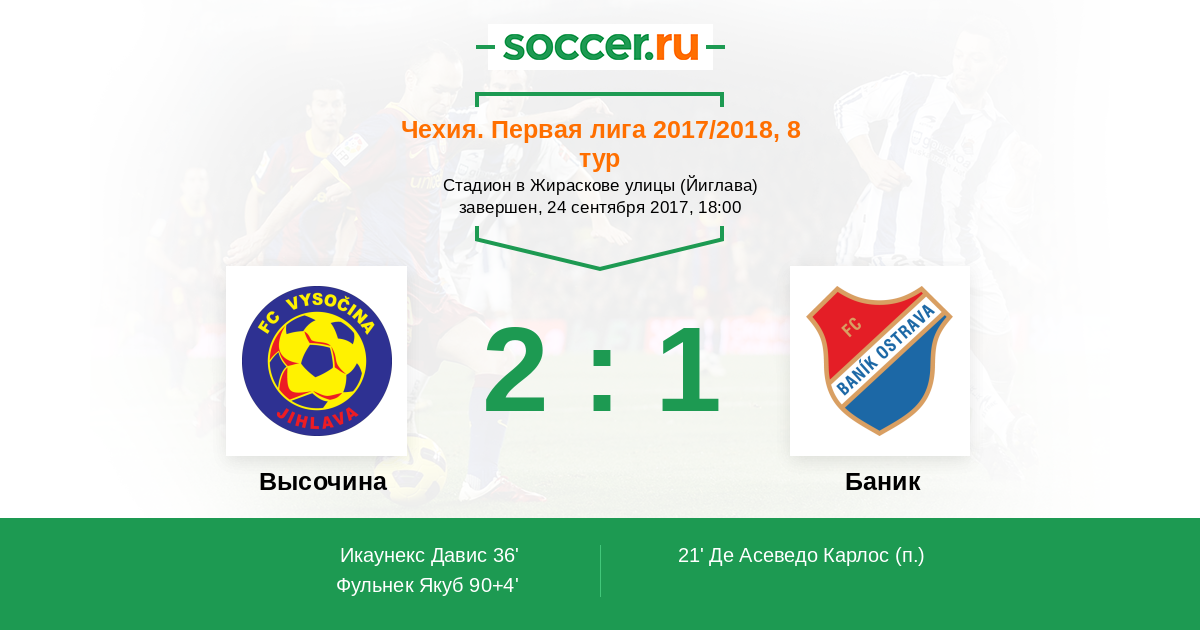Протокол матча Высочина против Баник