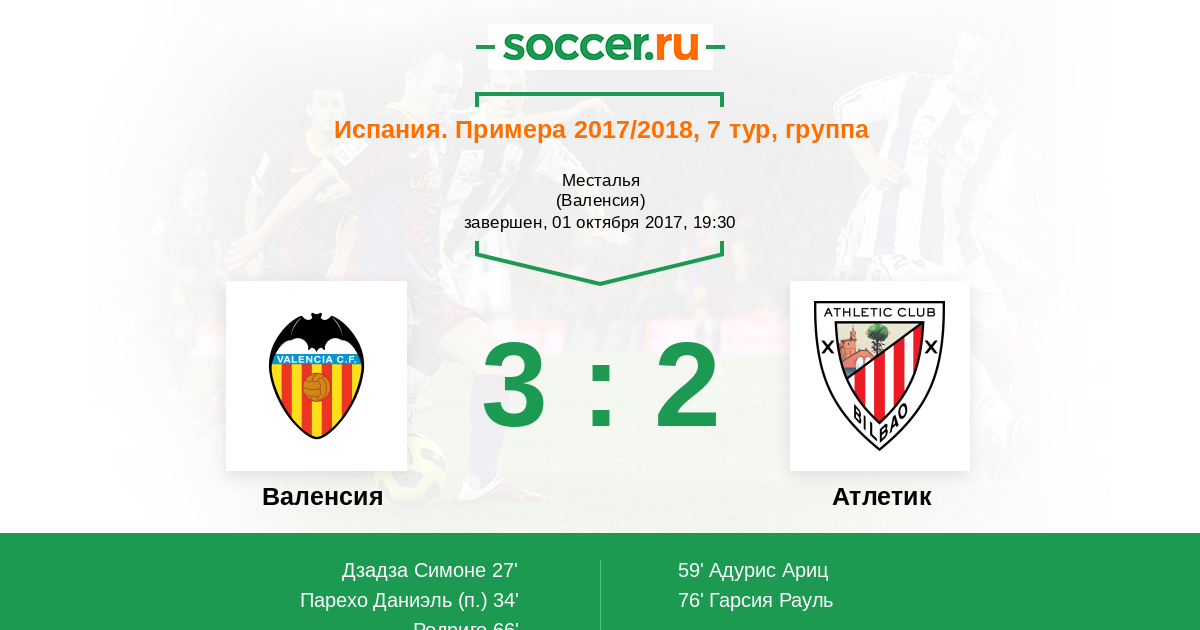 Протокол матча Валенсия против Атлетик