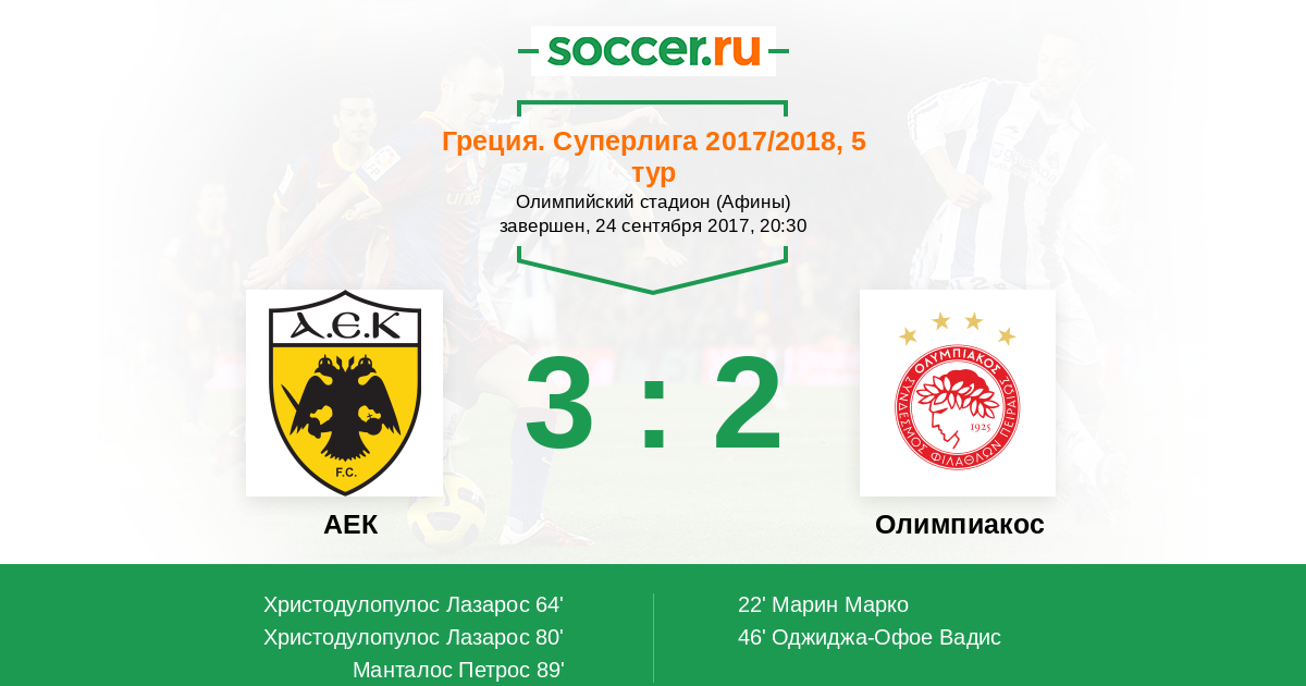 Протокол матча АЕК против Олимпиакос