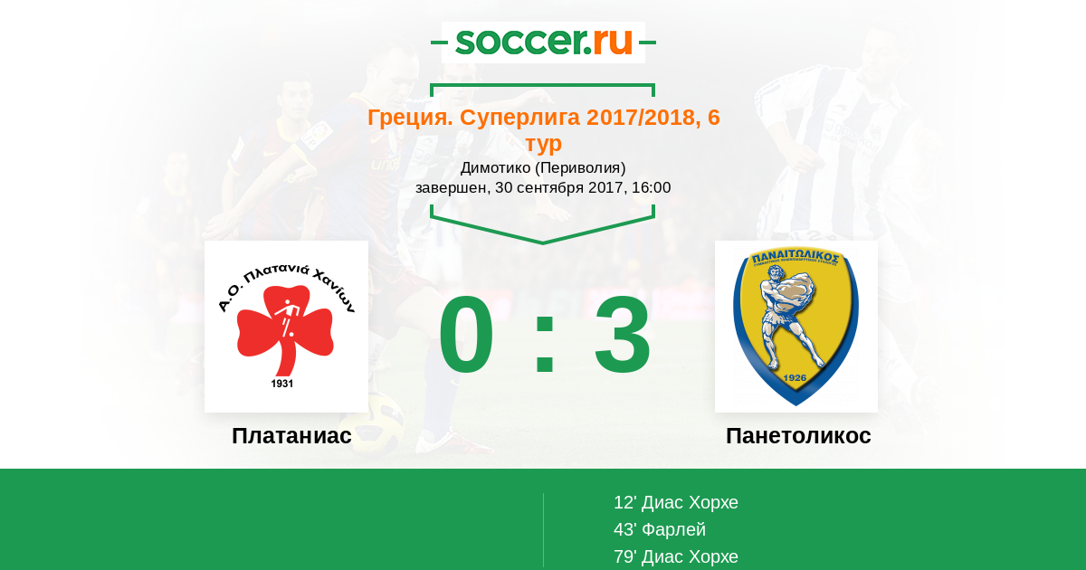 Протокол матча Платаниас против Панетоликос