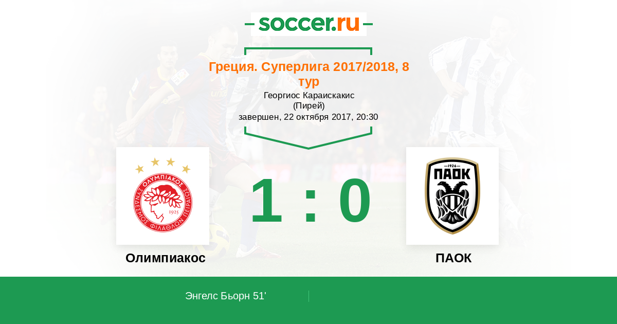 Протокол матча Олимпиакос против ПАОК