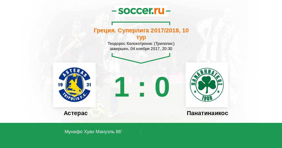 Протокол матча Астерас против Панатинаикос