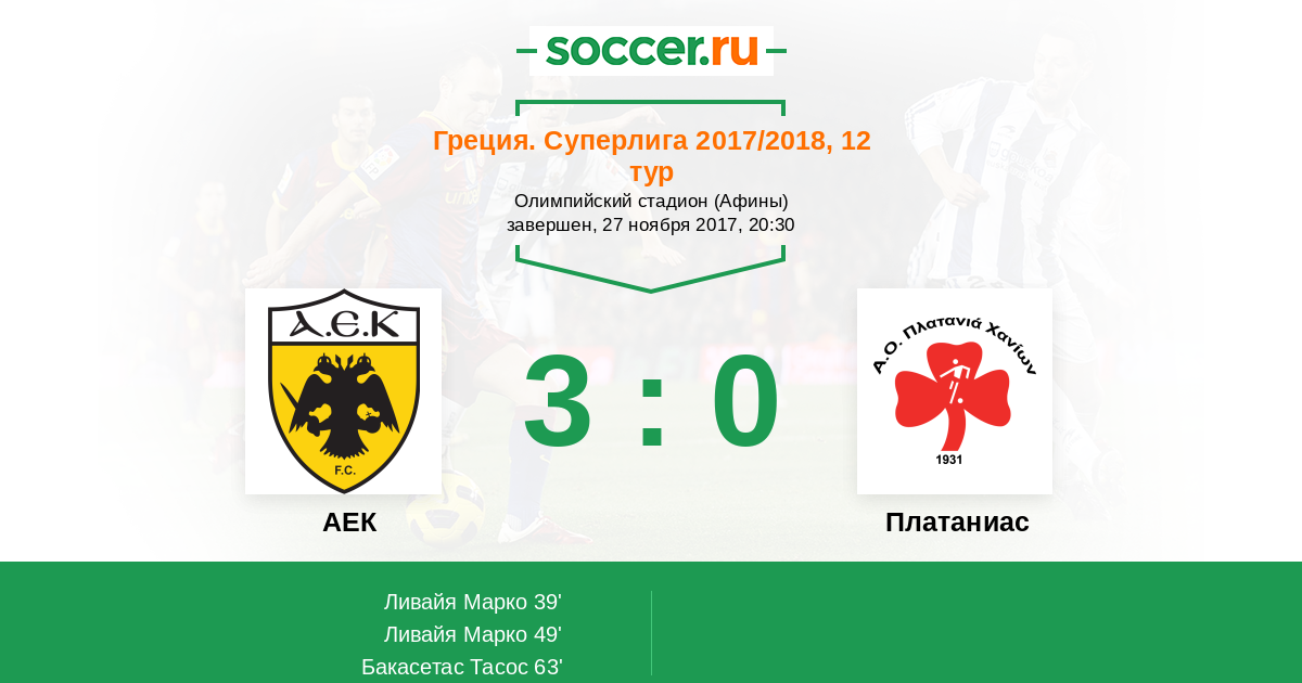 Протокол матча АЕК против Платаниас