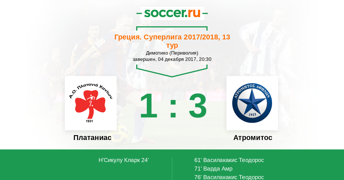 Протокол матча Платаниас против Атромитос