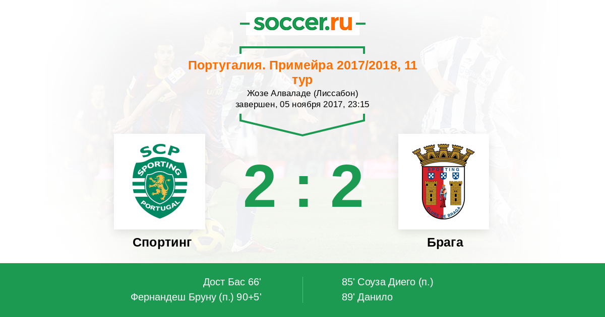 Протокол матча Спортинг против Брага