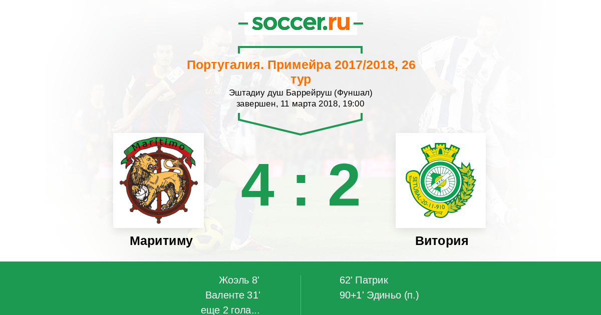 62' (3:1) Патрик (91) (Тейшейра Жоау (10))
