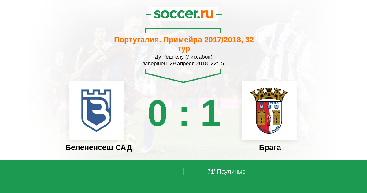 Протокол матча Белененсеш САД против Брага
