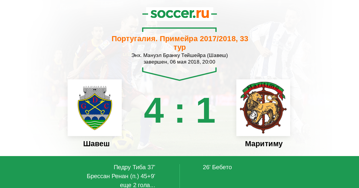 37' (1:1) Педру Тиба (25) (Перейра Матеус (73))