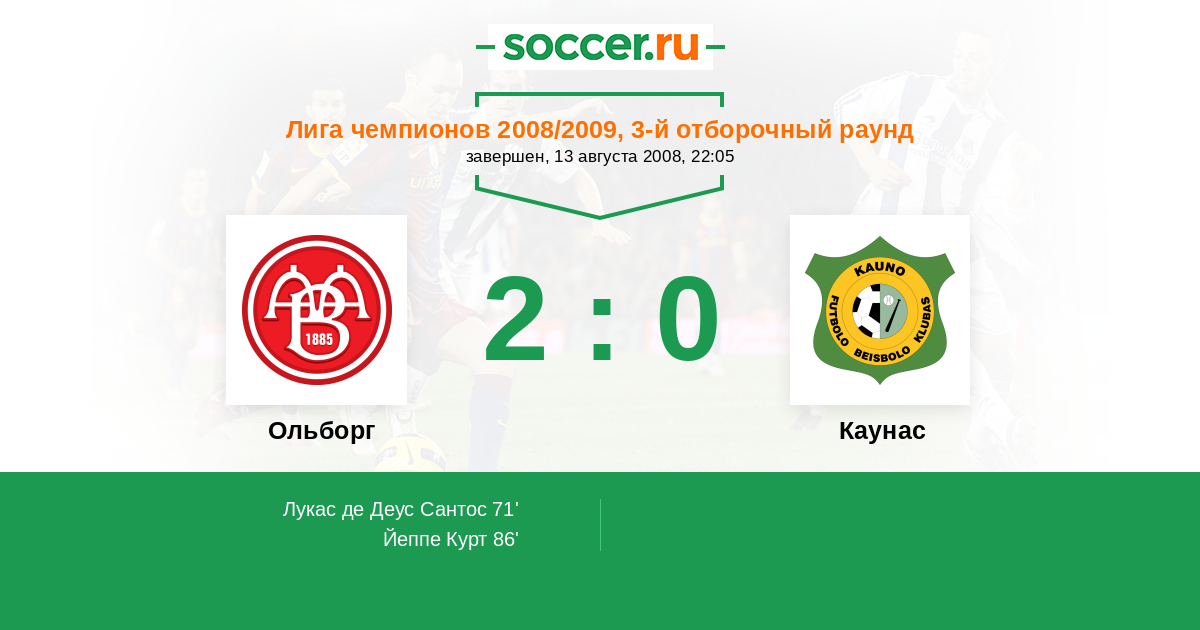 Протокол матча Ольборг против Каунас