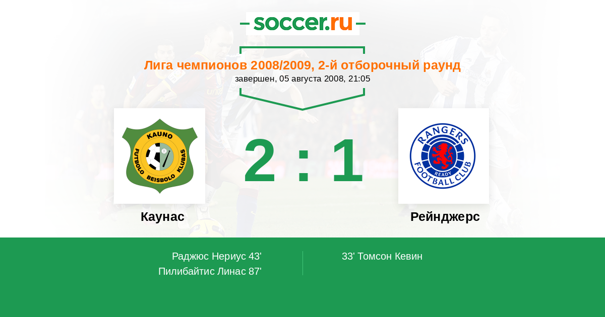 Протокол матча Каунас против Рейнджерс