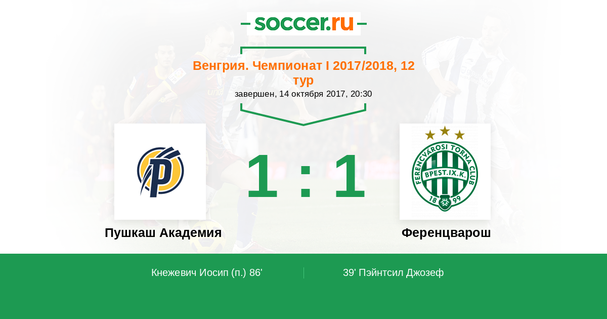Протокол матча Пушкаш Академия против Ференцварош