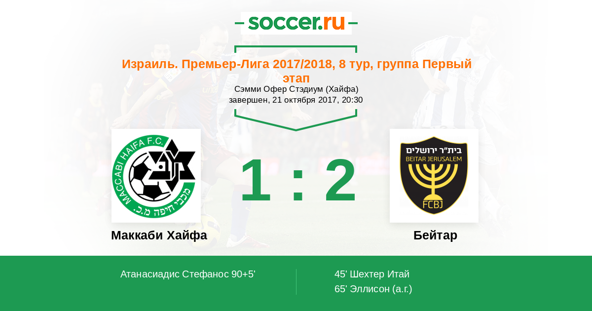 Протокол матча Маккаби Хайфа против Бейтар