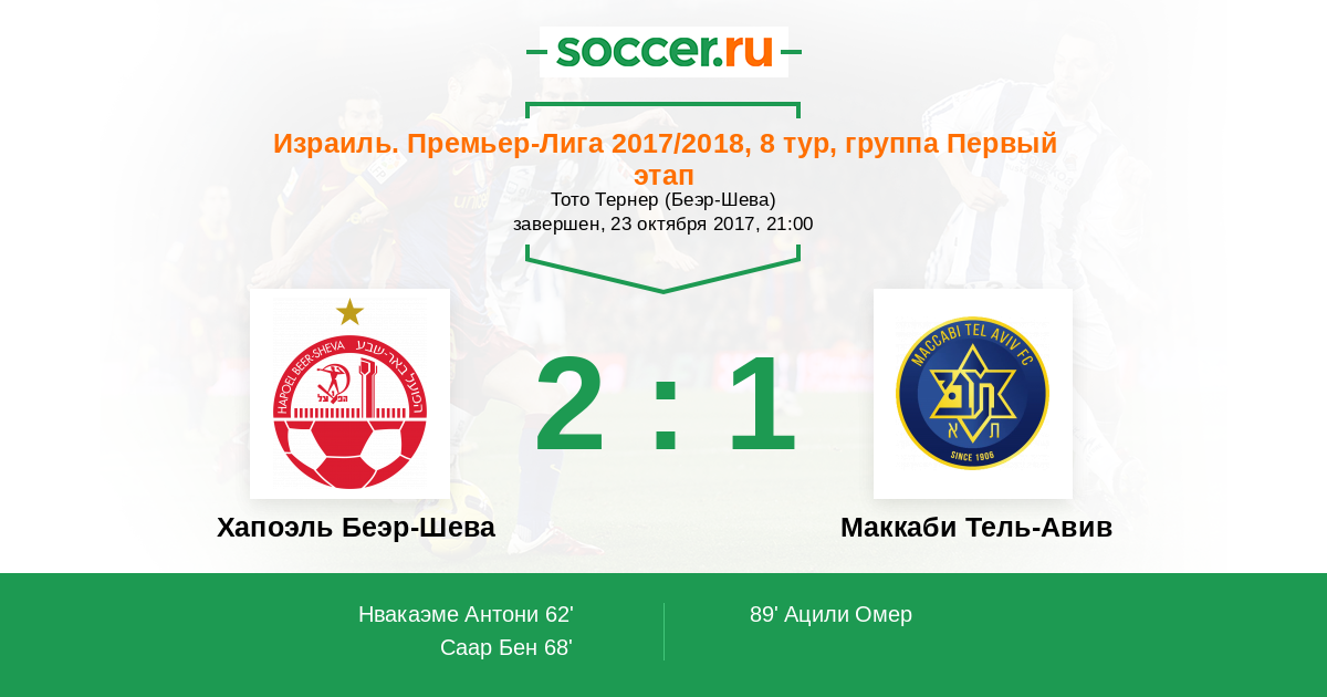 Протокол матча Хапоэль Беэр-Шева против Маккаби Тель-Авив