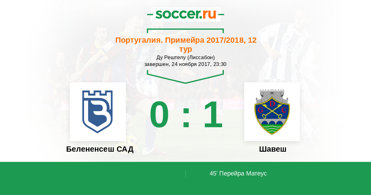 Протокол матча Белененсеш САД против Шавеш