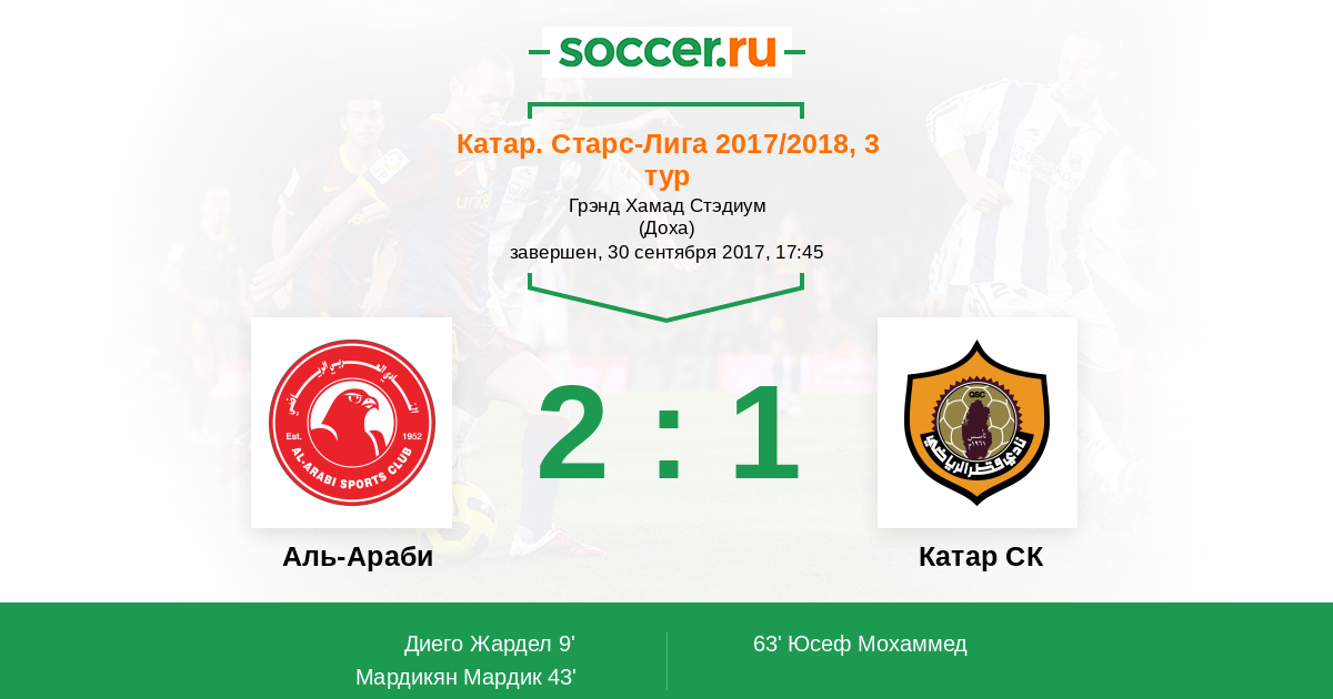 Протокол матча Аль-Араби против Катар СК