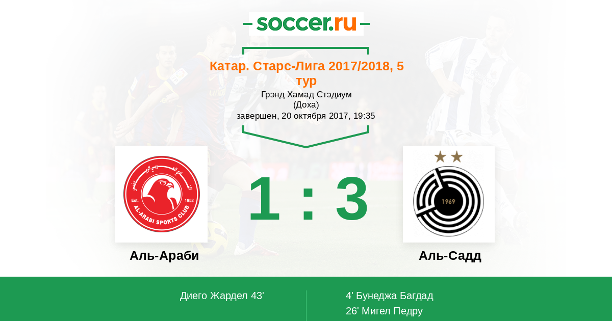 Протокол матча Аль-Араби против Аль-Садд