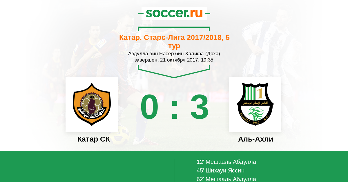 Протокол матча Катар СК против Аль-Ахли
