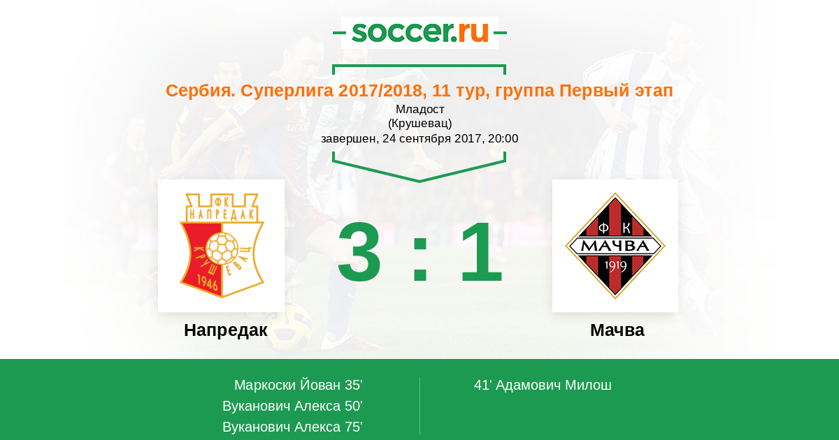 Протокол матча Напредак против Мачва