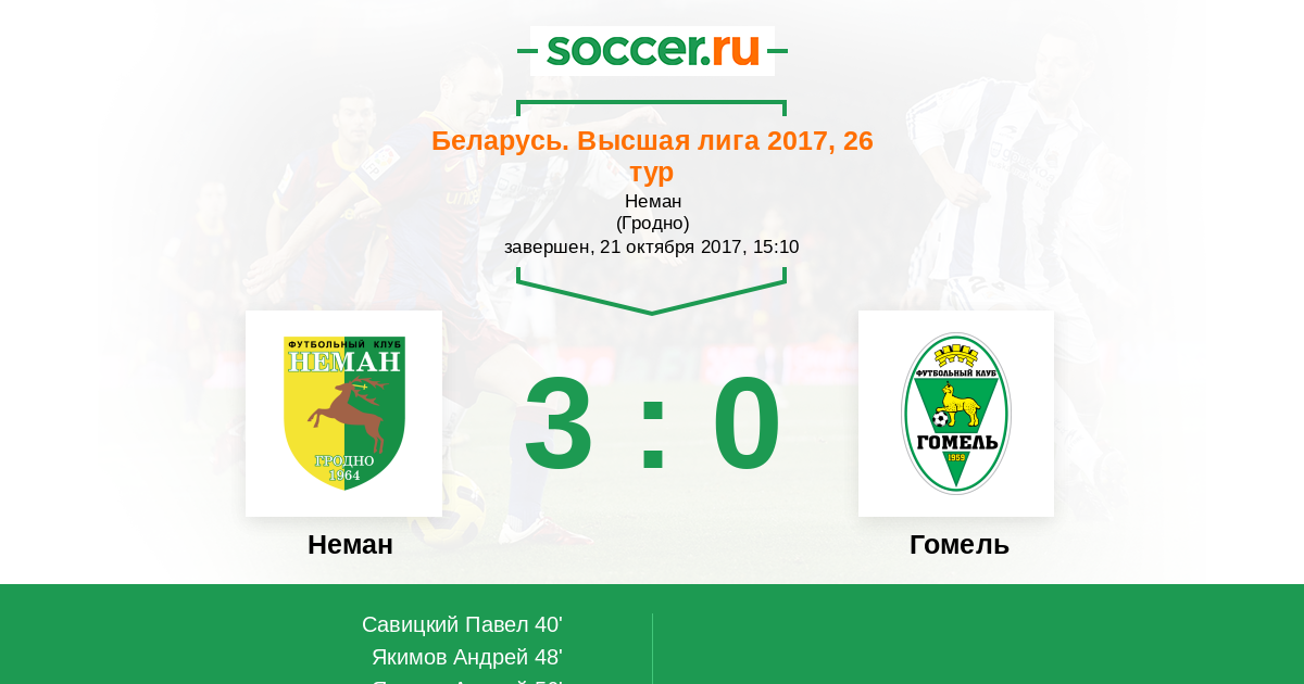 Протокол матча Неман против Гомель