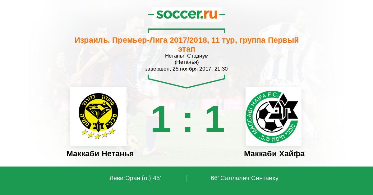 Протокол матча Маккаби Нетанья против Маккаби Хайфа
