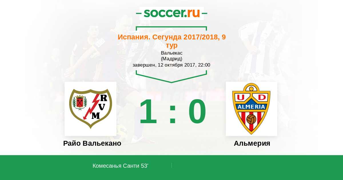 53' (1:0) Комесанья Санти (27) (Эмбарба Адриан (11))