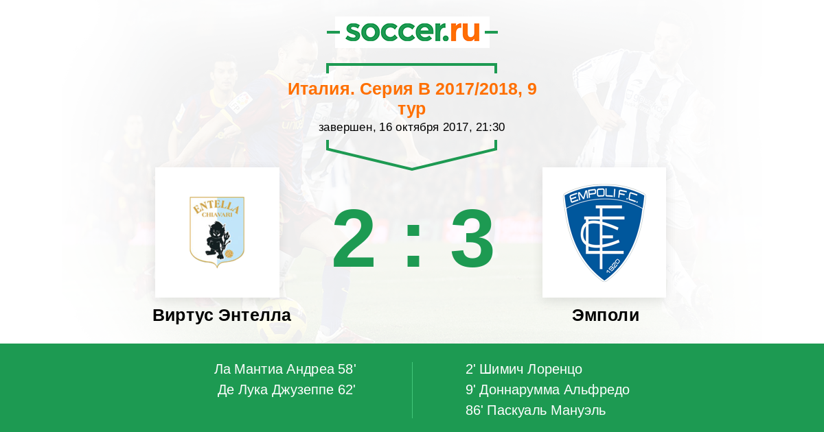 58' (1:2) Ла Мантиа Андреа (19) (Пеллиццер Мишель (15))