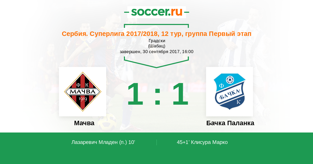 Протокол матча Мачва против Бачка Паланка