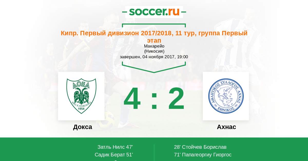 Протокол матча Докса против Ахнас