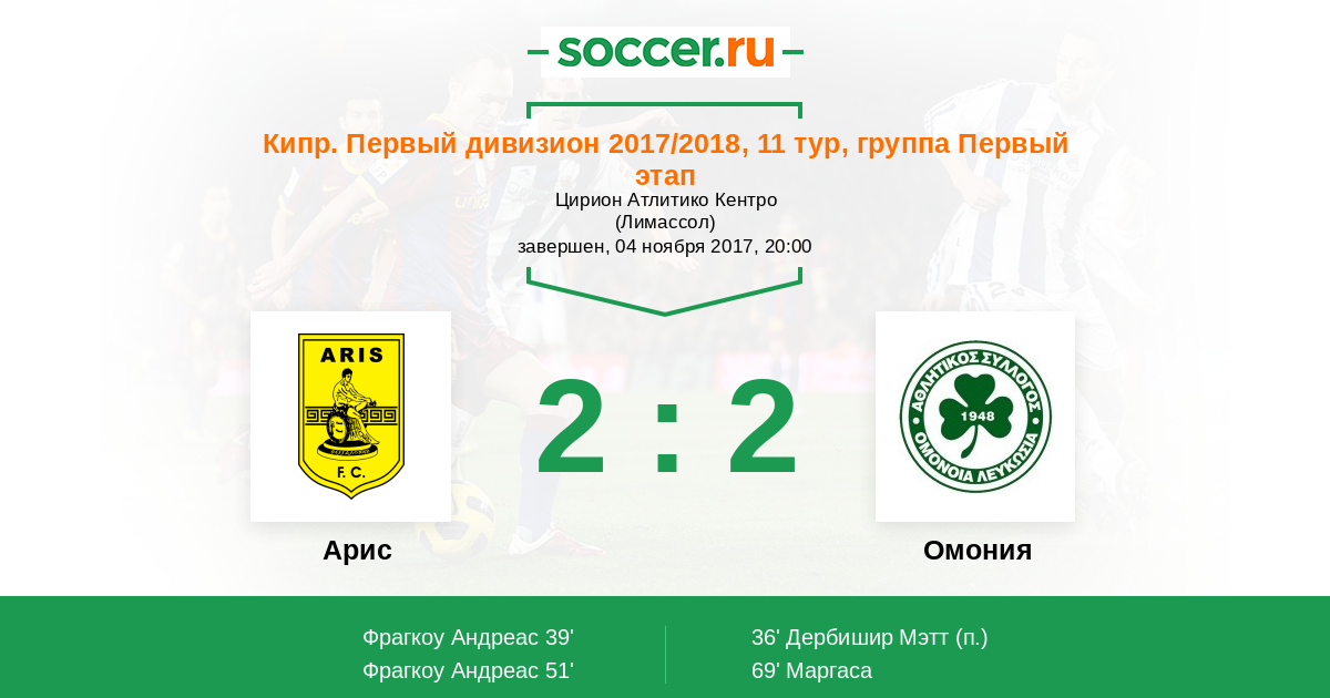 Протокол матча Арис против Омония
