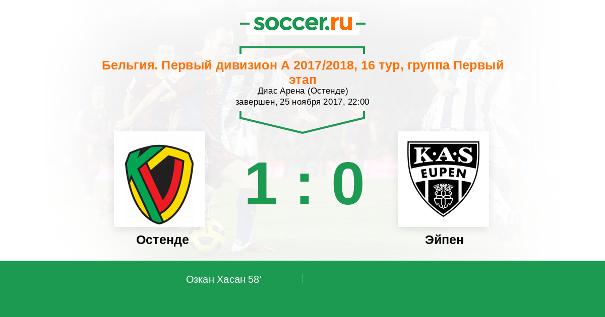 Протокол матча Остенде против Эйпен