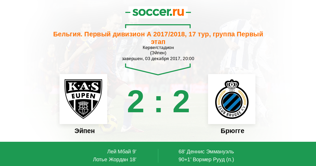 Протокол матча Эйпен против Брюгге
