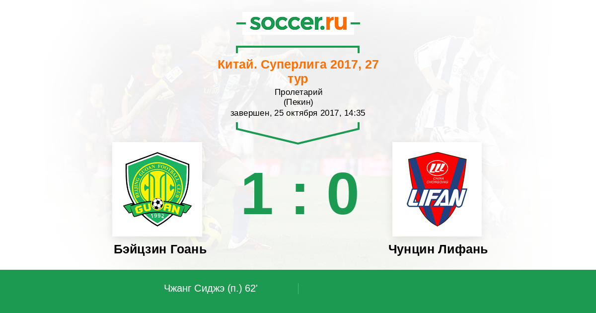 Протокол матча Бэйцзин Гоань против Чунцин Лифань