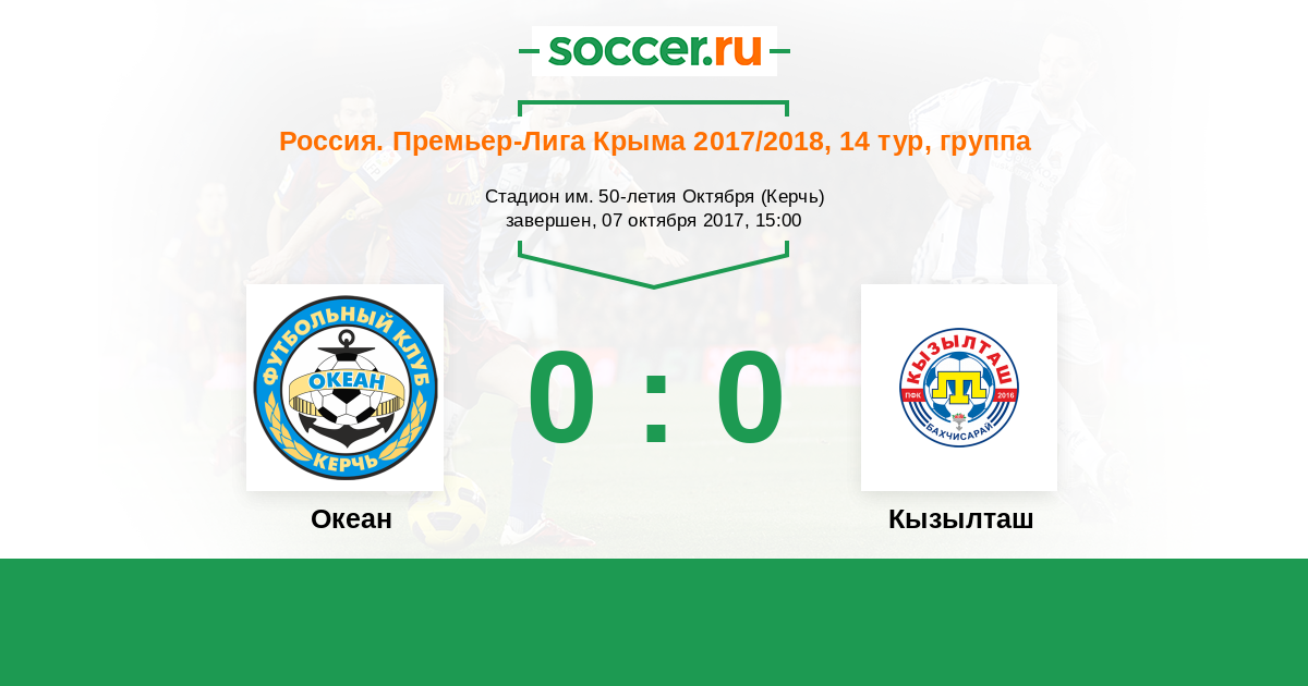 Россия. Премьер-Лига Крыма 02.09.2018 Океан Логотип футбольный клуб Океан (Керчь) 0:1 Логотип футбольный клуб Кызылташ (Бахчисарай) Кызылташ