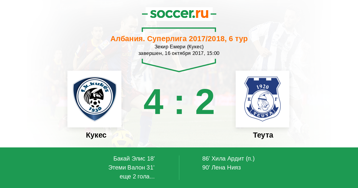 Протокол матча Кукес против Теута