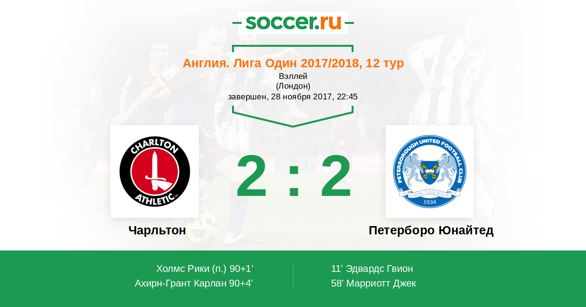 Протокол матча Чарльтон против Петерборо Юнайтед