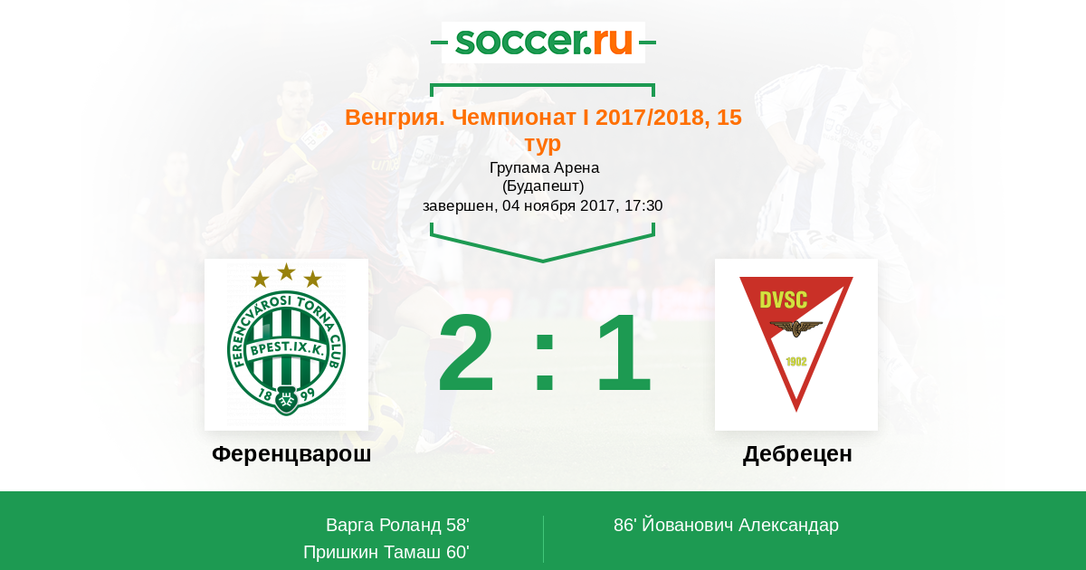 Протокол матча Ференцварош против Дебрецен