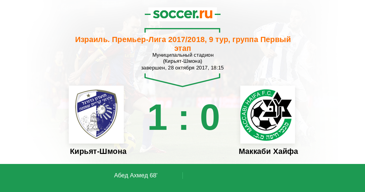 Протокол матча Кирьят-Шмона против Маккаби Хайфа