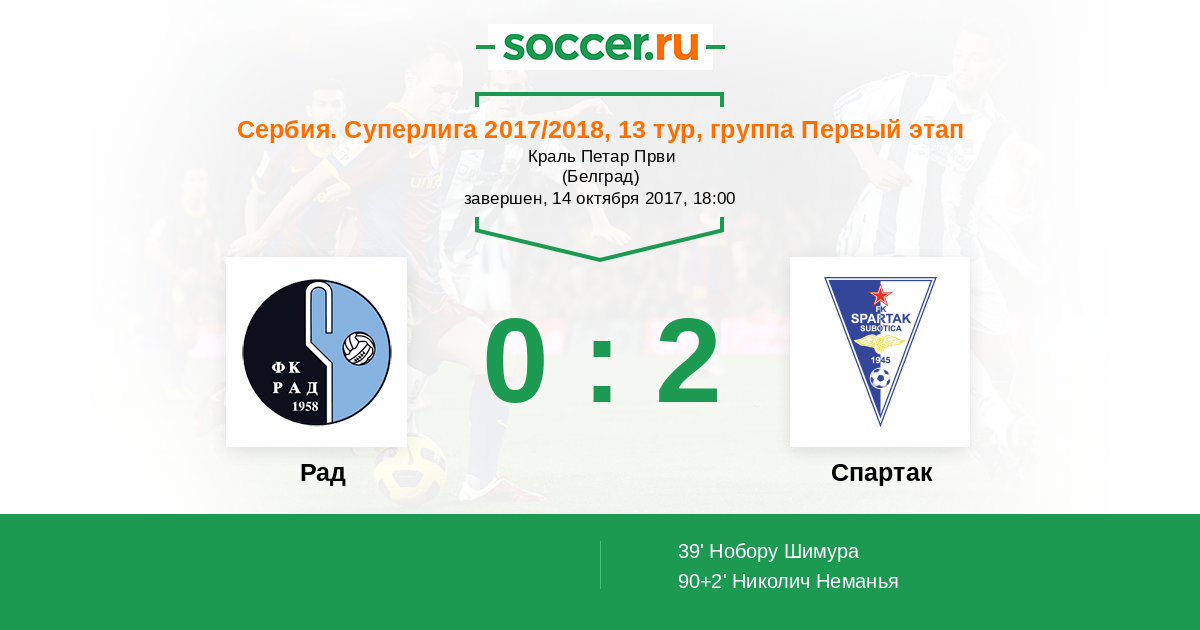 Протокол матча Рад против Спартак Суботица