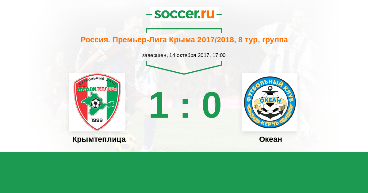 Россия. Премьер-Лига Крыма 19.08.2017 Океан Логотип футбольный клуб Океан (Керчь) 1:1 Логотип футбольный клуб Крымтеплица (Молодежное) Крымтеплица