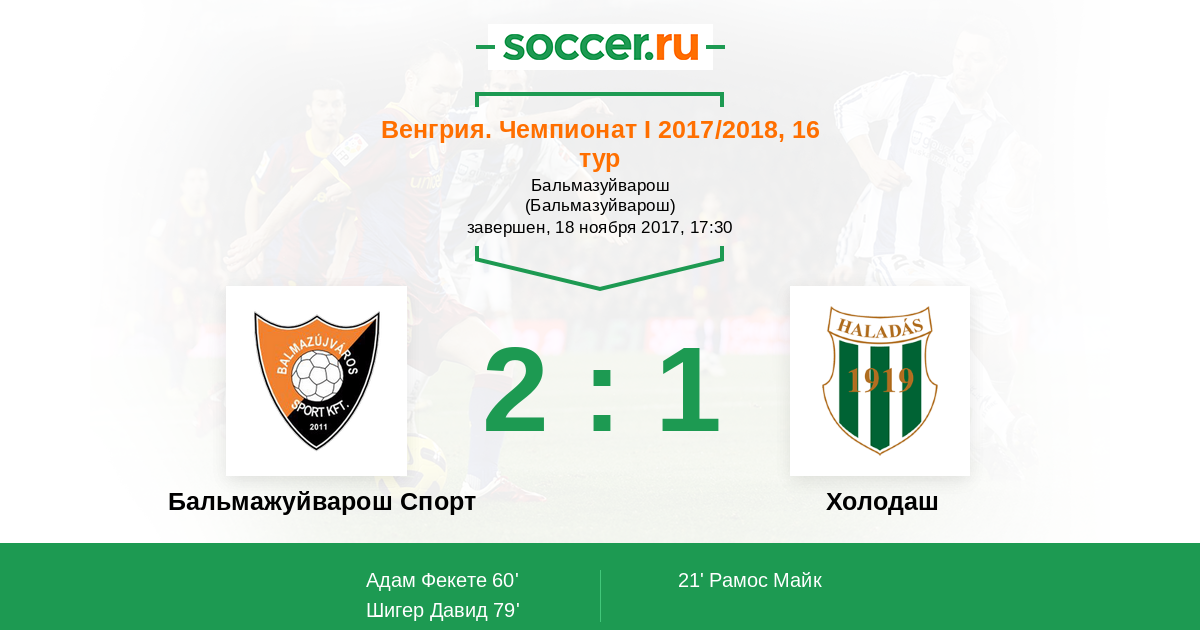 Протокол матча Бальмажуйварош Спорт против Холодаш