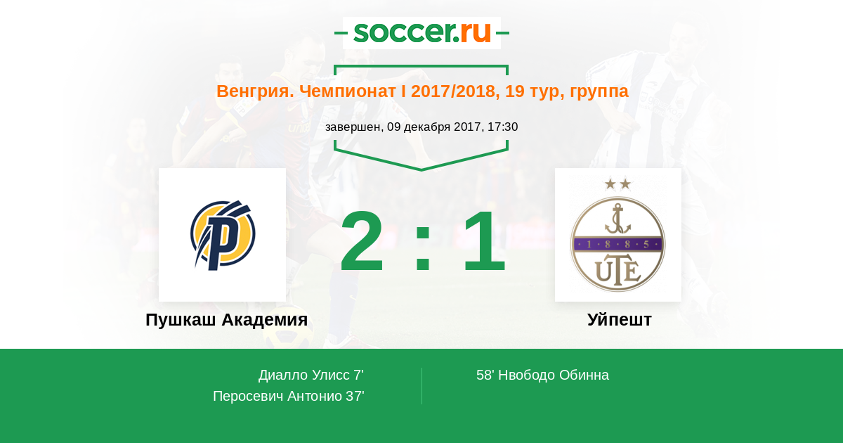 Протокол матча Пушкаш Академия против Уйпешт