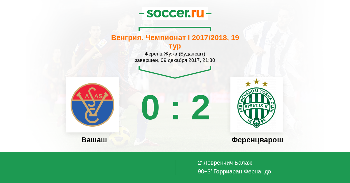 Протокол матча Вашаш против Ференцварош