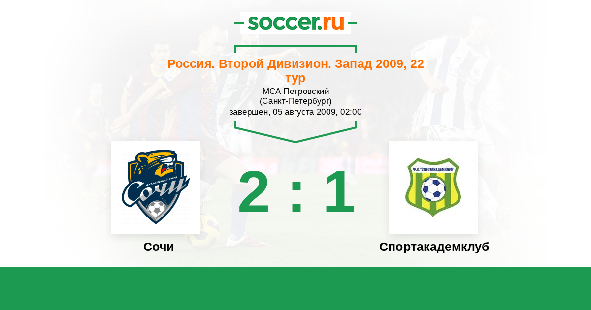 Россия. Вторая лига. Группа 2 21.04.2009 Спортакадемклуб Логотип футбольный клуб Спортакадемклуб (Москва) 1:2 Логотип футбольный клуб Динамо (Сочи) Динамо