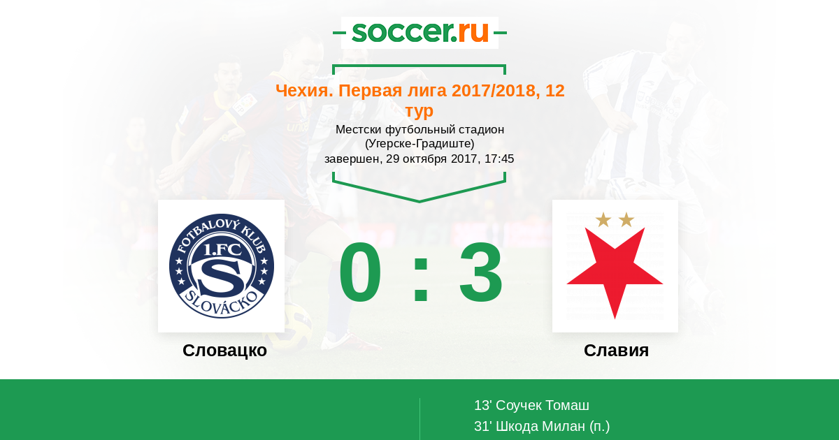 Протокол матча Словацко против Славия