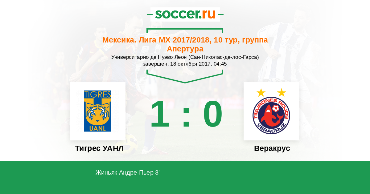 Протокол матча Тигрес УАНЛ против Веракрус